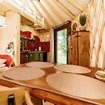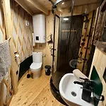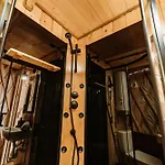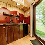 Een kitchenette in Jurty Za Winklem Ze Strefa Spa villa is uitgerust met koffie- en theevoorzieningen, een koelkast, een kookplaat. Ontspan bij een bubbelbad en een sauna.